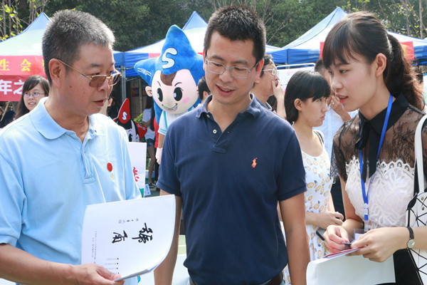 此次迎新工作以“文化与创意相撞”为主题,设置了学院门口全家福拍摄、横幅签名、鹿鸣茶艺社迎新茶、汉韵学社汉服迎新、“神秘之约”抽奖送书以及读书漂流六个创意迎新活动。此外,此次迎新还采用扫二维码的形式,完成迎新工作中的学生自助报道。