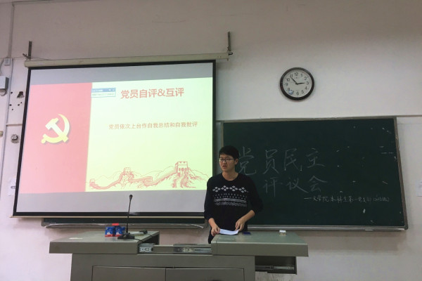 (通讯员 邹玉凤)12月12日下午,1946伟德国际源自英国本科生第一党支部在1946伟德国际源自英国410教室召开党员评议会议。此次会议由党支部书记朱旺波主持,2016级本科生辅导员周子杨以及党支部42位成员参加。