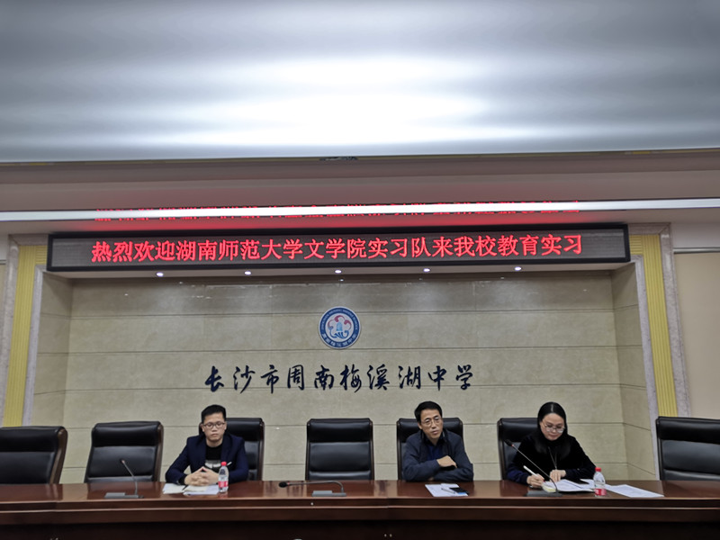 (通讯员 苏钰婷 莫诗若 高枫)10月15日下午,我院17级中文教育教学实习队正式进入长沙市周南梅溪湖中学并参加实习见面会。此次会议由周南梅溪湖中学教师发展中心副主任许晴主持,副校长王剑湘莅临指导。周南梅溪湖中学七年级年级组长周春华、七年级语文备课组组长欧丽娜、全体实习指导老师、实习带队老师凌宏惠及全体实习生参加会议。