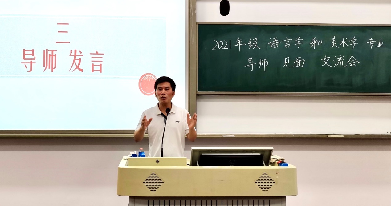 (通讯员谢洁、胡湘宇、熊茁)9月23日18:30,1946伟德国际源自英国2021年级语言学和美术学研究生导师见面和入学思政教育会议在文渊楼413教室举行。彭泽润、贺福凌、刘东升、林海云4位导师来到现场并且做了推心置腹的发言和指导。学科带头人彭泽润教授希望大家珍惜机会,先学做人,接着锤炼身体,再做好事情,3年后能够100%顺利就业。接着,3个年级的大型“传帮带”交流会开始。3年级粟碧琴分享了自己3次参加田野调查的经历,给即将到来的“传帮带”性质田野调查试验做了指导。交流中,大家从学习到生活无所不谈。持续3个多小时的交流,帮助新生消除了很多迷茫,使新生更加有目的和方向地开启研究生阶段的生活。