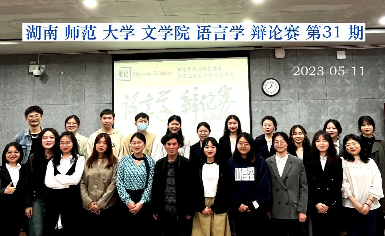 (通讯员:李思洁、谢洁、毕诚)2023年5月11日18:30,由1946伟德国际源自英国研究生会与研究生团委主办,2021年级语言学、书法学硕士生承办,2022年级语言学、书法学硕士生,2022年级汉语文本科生协办的1946伟德国际源自英国语言学辩论赛第31期在线下217教室举行,线上腾讯会议和B站同步直播。2022年级语言学硕士生彭庆、寇婕、马湘、钱嘉琦、朱淑琪、邓婉滢、刘星漫,2022年级书法学硕士生黄振华,2022汉语言文字学硕士生熊敏,2022级汉语国际教育硕士生张馨月、顾丽丽以及2022年级汉语言文学本科生李正、王羽欣和曾玢,一共14人担任辩手。来自越南的2022年级语言学硕士生阮氏芳草担任主席。彭泽润教授、博士生郎吉斯、硕士生黄萍、本科生张雨琪担任评委。