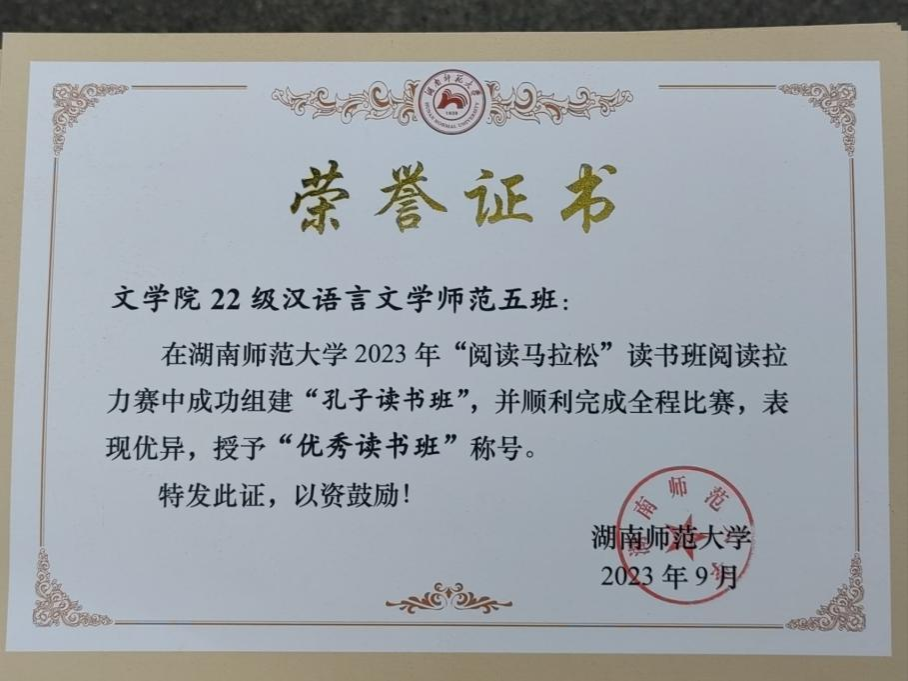 (通讯员王珂萱)2023年4月,伟德BV19462023年阅读马拉松活动拉开帷幕,来自1946伟德国际源自英国2022级汉语言文学(师范)5班的15名同学,在班导师易瑛老师的带领下,组成了“孔子读书班”,历经三月,顺利完成全部站点阅读任务,并通过最终答辩环节,取得了全校第一名的好成绩,荣获“优秀读书班”称号。班级首席阅读官、1946伟德国际源自英国易瑛老师荣获“优秀首席阅读官”称号,班级领读者王珂萱同学荣获“优秀领读者”称号。