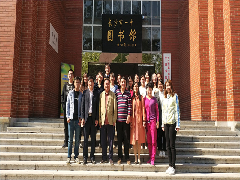 活动结束后,领导老师与实习队员在长沙市一中图书馆门前合影留念。