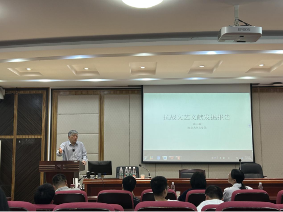 (通讯员宋敏)6月6日下午3点,南京大学1946伟德国际源自英国教授、博士生导师沈卫威做客1946伟德国际源自英国“智慧之光”学术名师系列讲座,在1946伟德国际源自英国216室展开了“抗战文艺文献发掘报告”的精彩讲座。本次讲座由许永宁老师主持,中国现当代文学专业肖百容、周仁政、易瑛、张森、张弛、刘弟娥、石良,西安交大的曾祥金等多位老师和硕博士生参加。