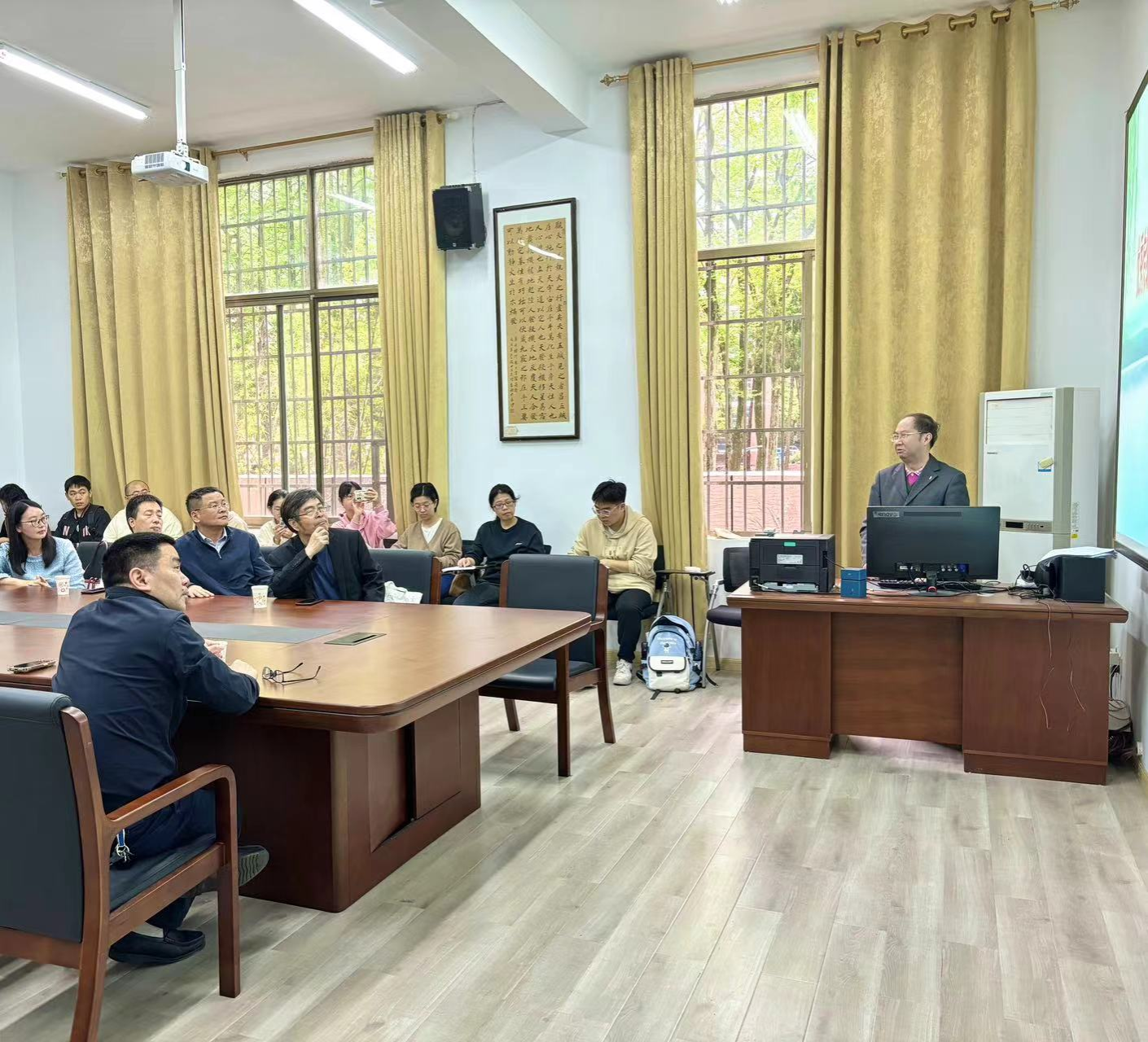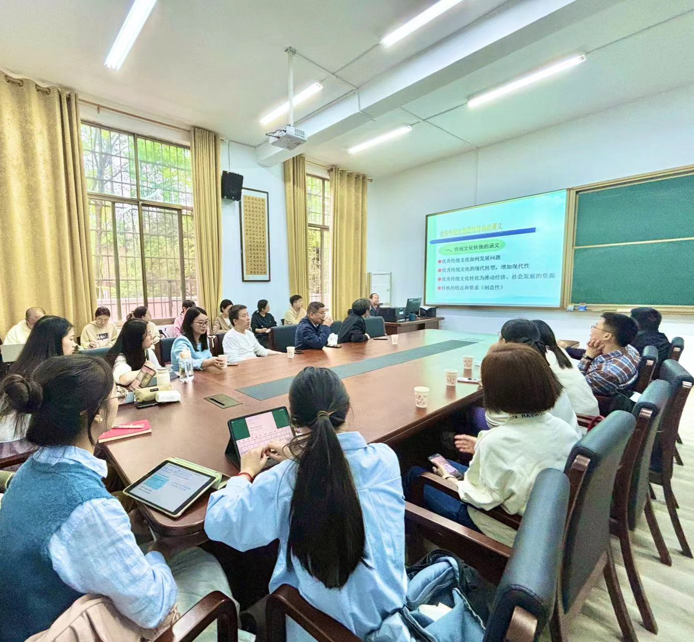 在提问环节,同学们就“如何把握好文化传承与经济发展的平衡”等问题与段超教授展开互动,段教授从相关部门职责、传统文化自身特点等方面深入浅出地给予解答。在场的多位教师还围绕讲座主题与段教授进行了交流讨论,内容丰富,氛围热烈。