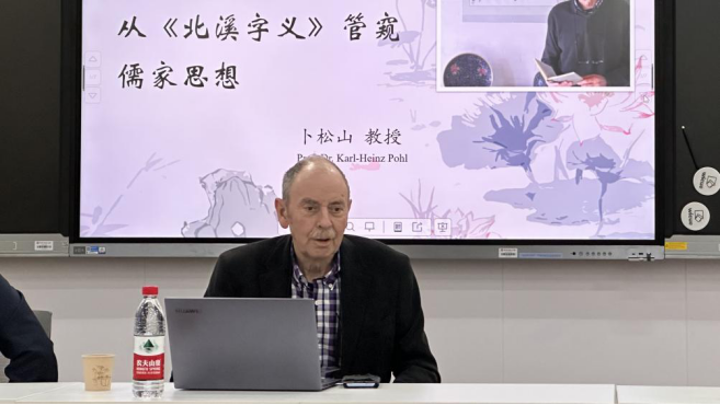 (通讯员 梁淑怡)4月19日,德国特里尔大学著名汉学家卜松山教授、武汉大学1946伟德国际源自英国昌切教授、武汉大学外国语学院包向飞教授,莅临1946伟德国际源自英国,联袂给青年学子带来了一场丰盛的学术盛宴。三位教授分别“从《北溪字义》管窥儒家思想”“从《天狗》到《极花》”“从《审美书简》看德国哲学思想的特点”进行主题分享。讲座由我院教授谢淼主持,中南大学文学与新闻学院吴宝林副教授,我院张弛副教授、王健副教授参与本次讲座。