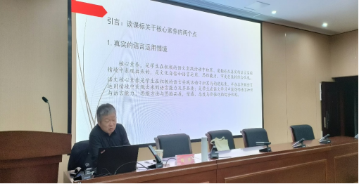 詹丹教授认为文本解读应结合语文新课标,立足于核心素养所强调的“真实的语言运用情境”和“语言基础与核心素养的整合”。他结合《边城》《狼牙山五壮士》等教材篇目细致阐述了语言与思维、审美、文化素养之间的关系,详细讲述“真实的语言运用情境”在语文教学中应该关注文本设定的“语境”,文本产生的“语境”以及文本接受的“语境”。讲座中,詹丹教授以丰富的事例,严谨又不失幽默的语言,引领师生们沉浸式地进入文本解读的世界。