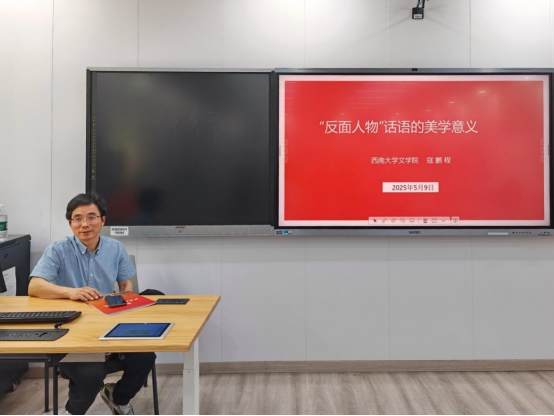 (通讯员吴柏瑜)2025年5月9日上午,西南大学1946伟德国际源自英国教授、博士生导师寇鹏程应邀在1946伟德国际源自英国213教室作题为“‘反面人物’话语的美学意义”的学术讲座。此次讲座由1946伟德国际源自英国何林军教授主持,文浩副教授、牟方磊副教授及文艺学专业研究生参与了讲座。
