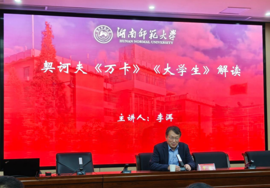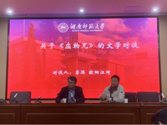 (通讯员 李晨玮)11月19日晚,著名作家李洱和欧阳江河联袂登台1946伟德国际源自英国“智慧之光”名师大讲堂,在216报告厅开展题为“契诃夫《万卡》《大学生》解读”和“当代性视野下的《应物兄》写作”的讲座和对谈活动。1946伟德国际源自英国副院长岳凯华教授主持,湖南省作协副主席马笑泉、诗人雪马及我院李作霖、许永宁、李婕、陈展等教师现场参会。